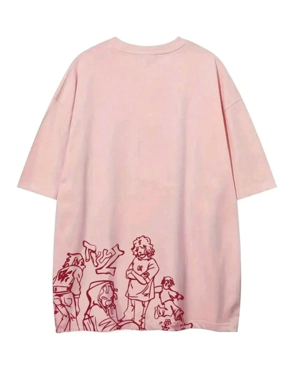 Make a statement with this oversized pink tee featuring an eye-catching cartoon street-style print. Crafted from soft, breathable cotton, it's perfect for relaxed days, casual hangouts, or school. The loose fit gives you ultimate comfort while keeping your outfit trendy and bold.
