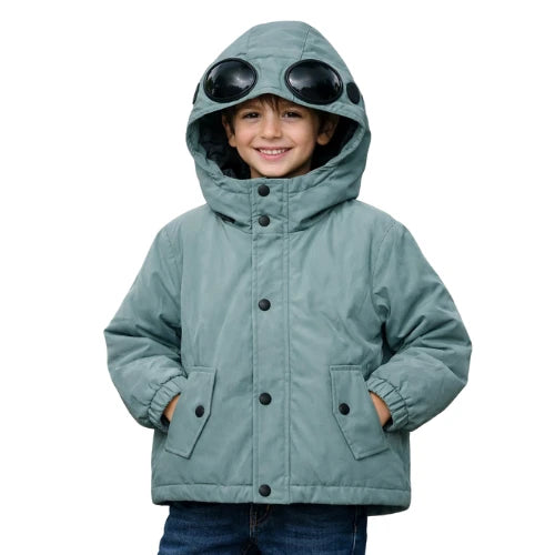 تتميز السترة بنسيج خارجي متين يحمي من الرياح الباردة، بالإضافة إلى تصميم فريد بغطاء رأس يضفي مزيدًا من الدفء ومظهرًا عصريًا. كما توفر البطانة الداخلية عزلًا مريحًا، مما يحافظ على دفء الأطفال في الطقس البارد.