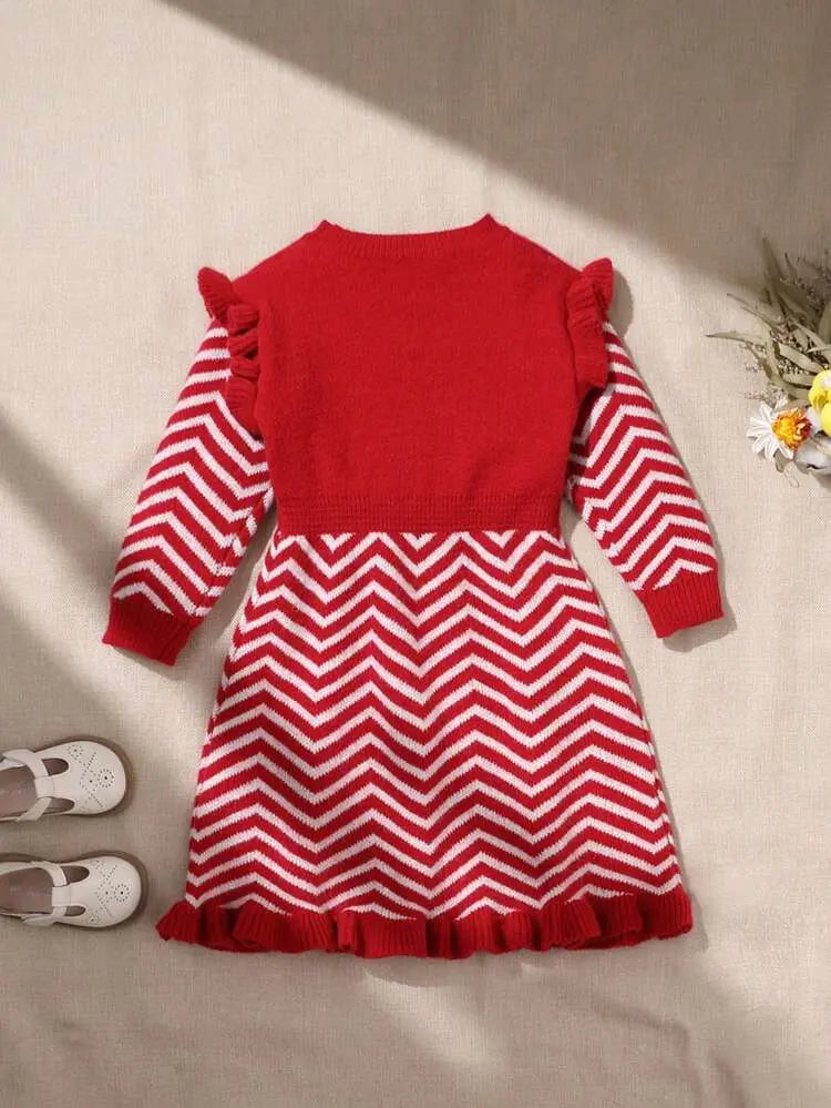 Shein Fast Delivery Kids Red Zigzag Knitted Dress – Winter Girls Dress | Delicado