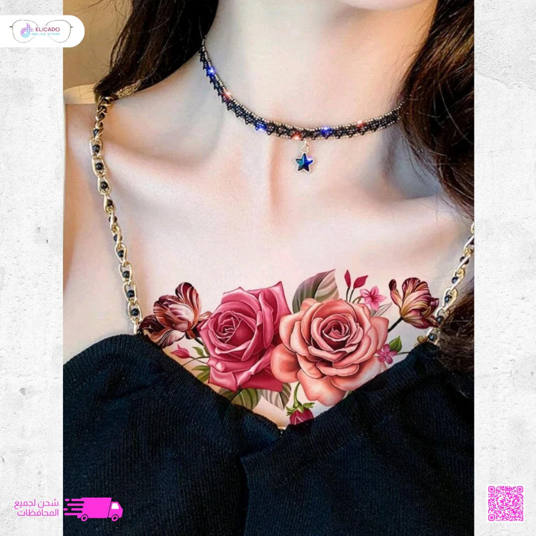 لعشاق التفاصيل الناعمة والأنثوية، يُعدّ وشم الوردة الطبيعية هذا الخيار الأمثل، فهو يتميز بتصميمات زهور واقعية بألوان وردية وموف ناعمة، مع لمسة فنية ناعمة. سهل التطبيق على البشرة، ومقاوم للماء، وسهل الإزالة. مثالي للمناسبات الخاصة، والنزهات غير الرسمية، أو جلسات التصوير، حيث يضفي لمسة من الأناقة والجمال على إطلالتك.
