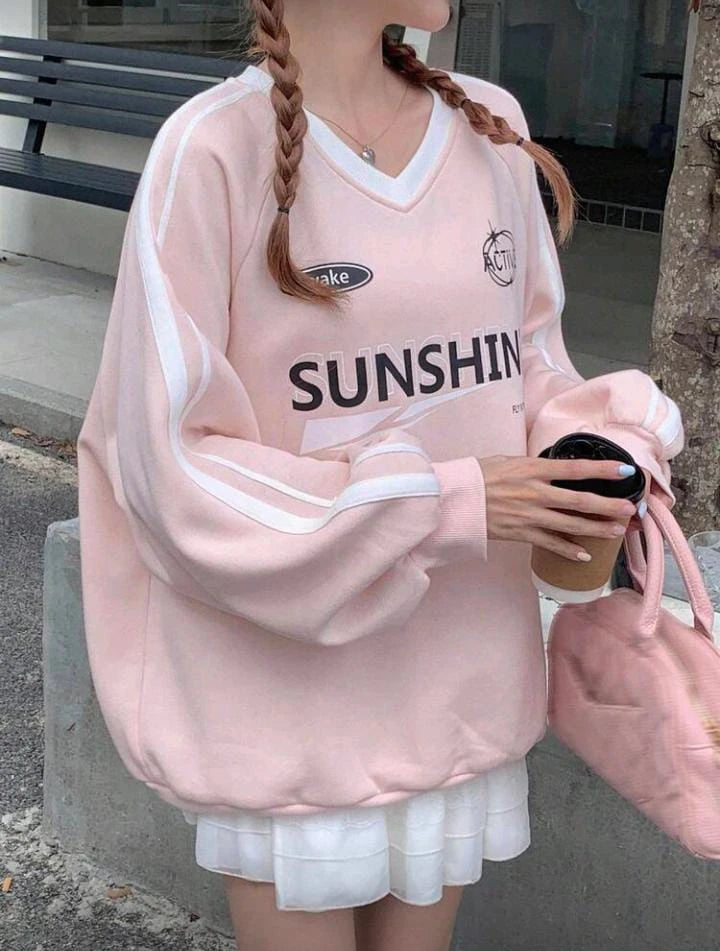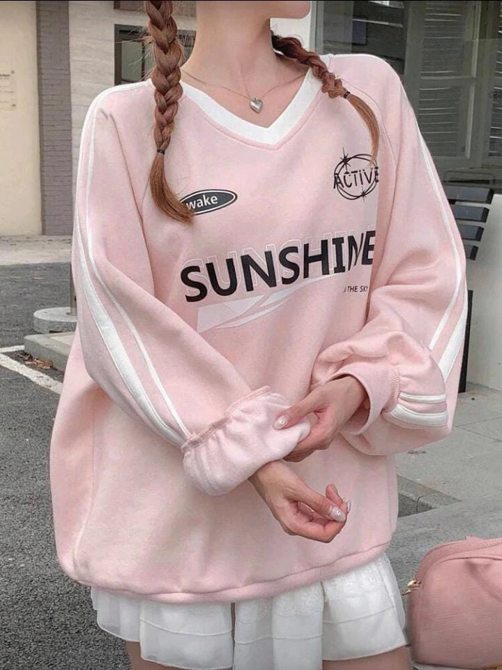 وصف المنتج: سويت شيرت نسائي كاجوال يتميز بطبعة أمامية عصرية وخطوط رياضية على الأكمام. مصنوع من قماش ناعم ومريح بقصة فضفاضة، مثالي للارتداء اليومي والنزهات غير الرسمية. سهل التنسيق مع الجينز أو الشورت.