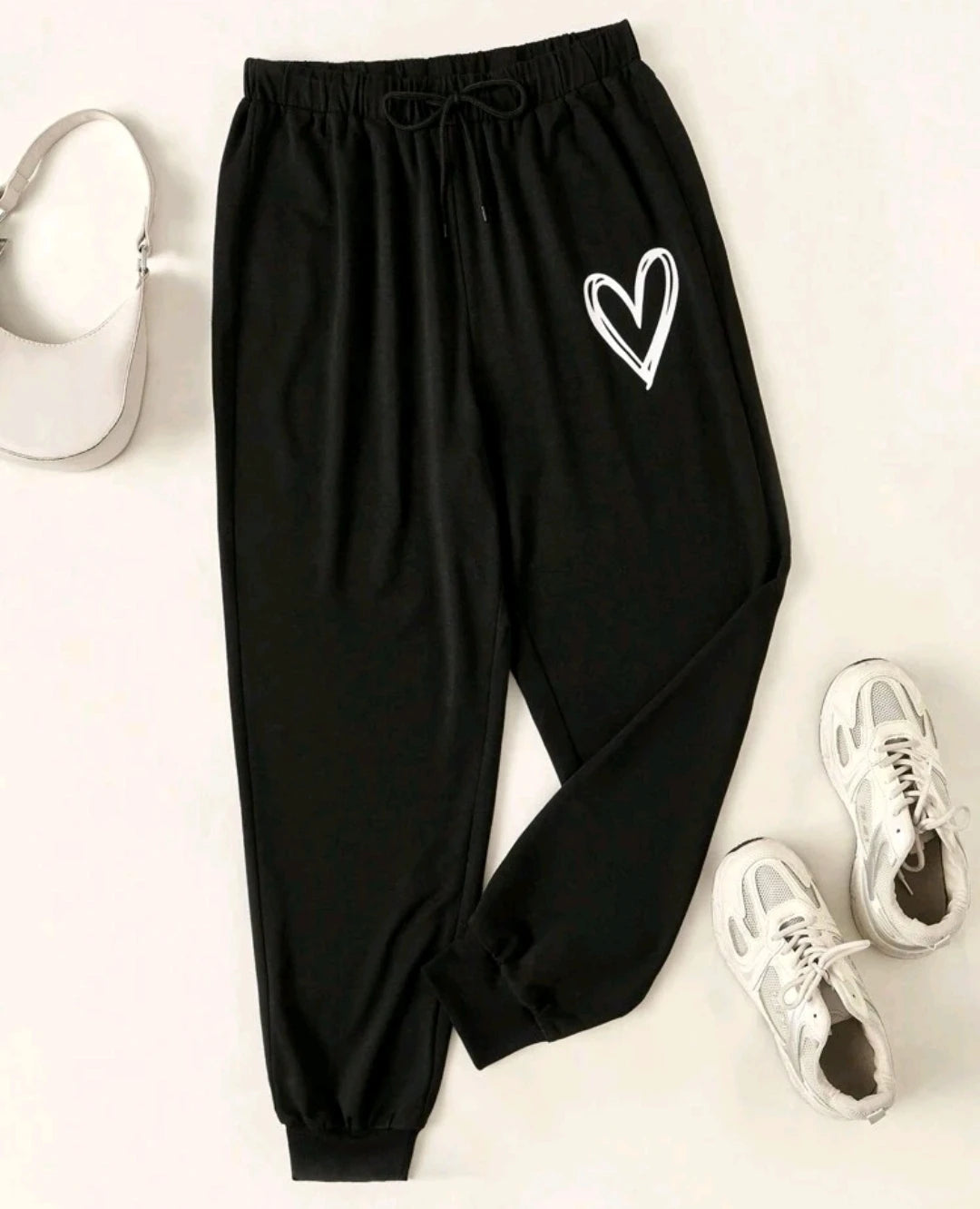 تصميم بسيط وعصري مع طبعة قلب أبيض لطيفة على الساق اليسرى. مصنوع من قماش ناعم ومطاطي يضمن الراحة طوال اليوم. يوفر حزام الخصر المطاطي المزود برباط مقاسًا قابلًا للتعديل، بينما تضفي الحواف المطوية لمسة نهائية أنيقة ومريحة. مثالي للاسترخاء، أو قضاء المشاوير، أو الأنشطة الخارجية الخفيفة.